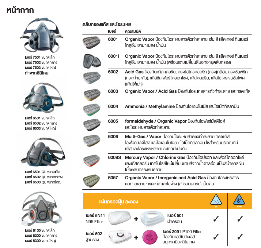 การเลือกตลับกรองถ่านกัมมันต์ เพื่อป้องกันแก๊ส และไอระเหยขึ้นอยู่กับชนิดและปริมาณของสารพิษที่มีความเข้มข้นสูงถึงระดับ IDLH (lmmediately Dangerous to Line and Health) อาจเป็นอันตรายต่อชีวิตและสุขภาพอย่างทันที ควรศึกษาให้ละเอียดก่อนการตัดสินใจ