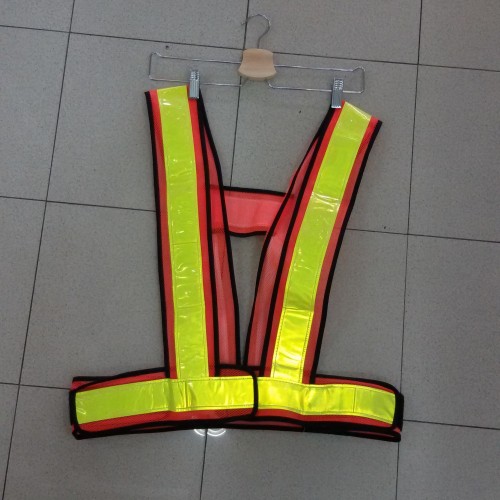 เสื้อจราจร แถบสะท้อนแสง ทรงV กว้าง สีส้ม