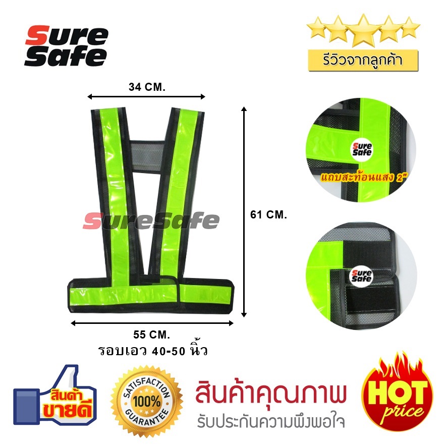 แถบสะท้อนแสง สะท้อนแสงได้ดีทั้งกลางวัน-กลางคืน ทำจากวัตถุดิบคุณภาพดี ตัดเย็บประณีต สวยงาม สินค้าจากโรงงานผู้ผลิต ทนทาน สวมใส่ง่าย น้ำหนักเบา โปร่ง ไม่ร้อน